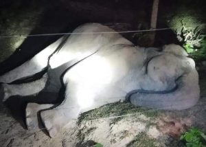 শেরপুরের নালিতাবাড়ী উপজেলায় ধানখেতে কৃষকদের ফাঁদ জেনারেটরের তারে জড়িয়ে একটি মাদি বন্য হাতির মৃত্যু হয়েছে। গতকাল বৃহস্পতিবার(৩১ অক্টোবর) রাতে উপজেলার সীমান্তবর্তী বাঁতকুচি গ্রামের রাবার বাগান এলাকায় এ ঘটনা ঘটে। শুক্রবার (১ নভেম্বর) সকালে ওই মৃত হাতিটিকে উদ্ধার করে ময়নাতদন্ত শেষে মাটিতে পুতে রেখেছে বন বিভাগ।